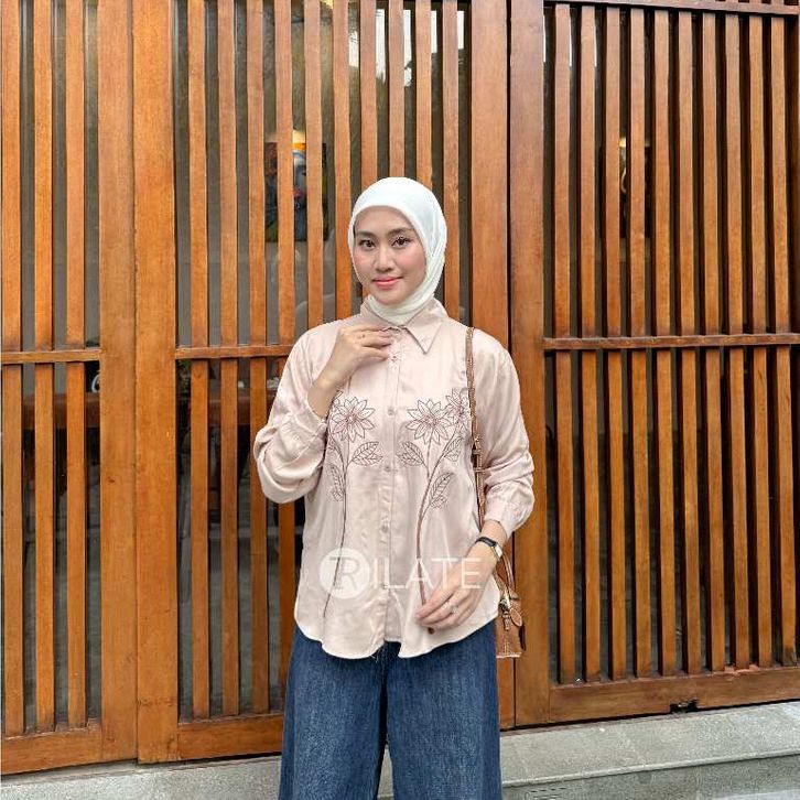 [Star]Jennie Kemeja Bordir Blouse Korean Style Atasan Wanita Lengan Panjang Rayon Twill termurah !!!