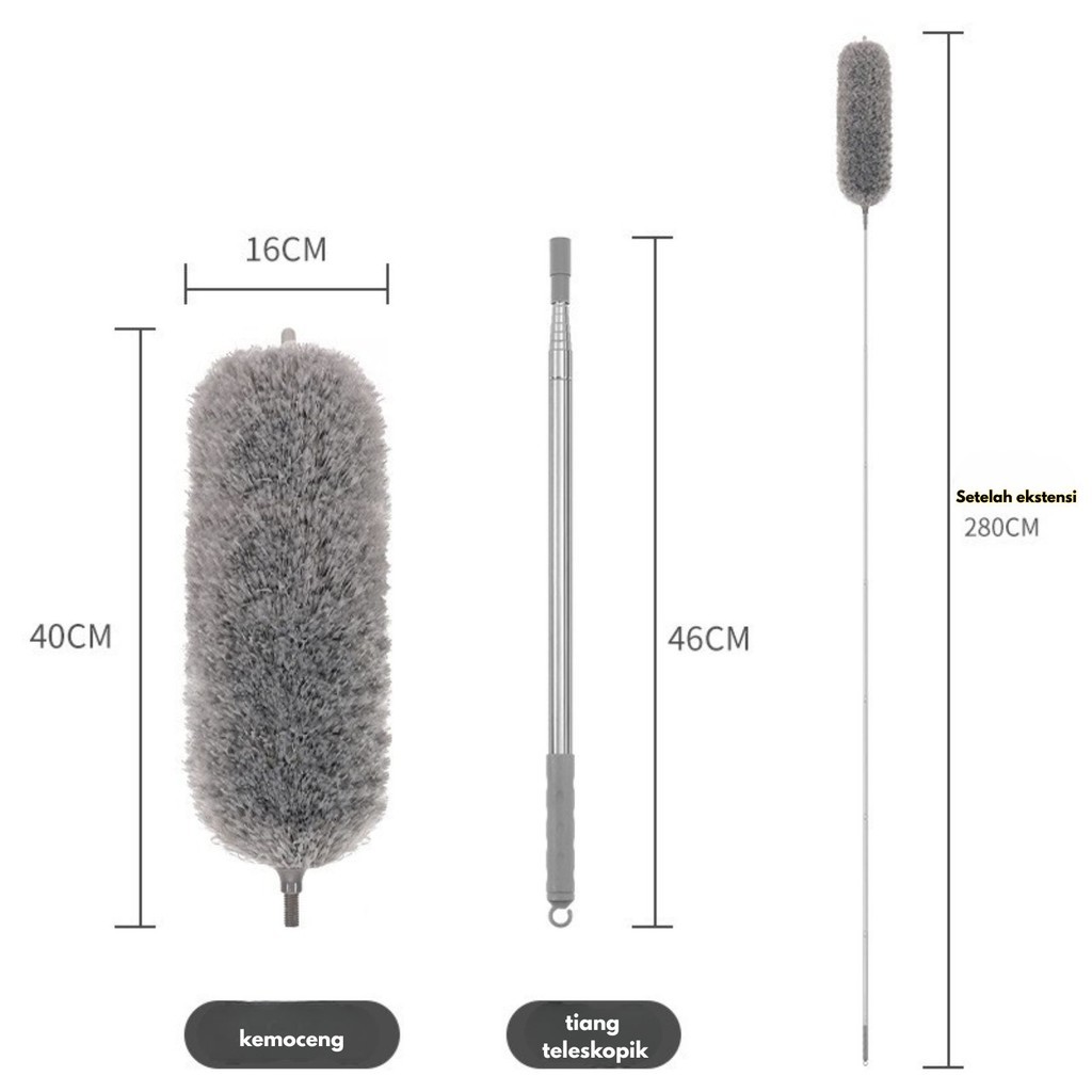4Pcs Kemoceng Microfiber 280cm BR139 Panjang Alat Pembersih Langit-Langit Rumah Tarik Tekuk