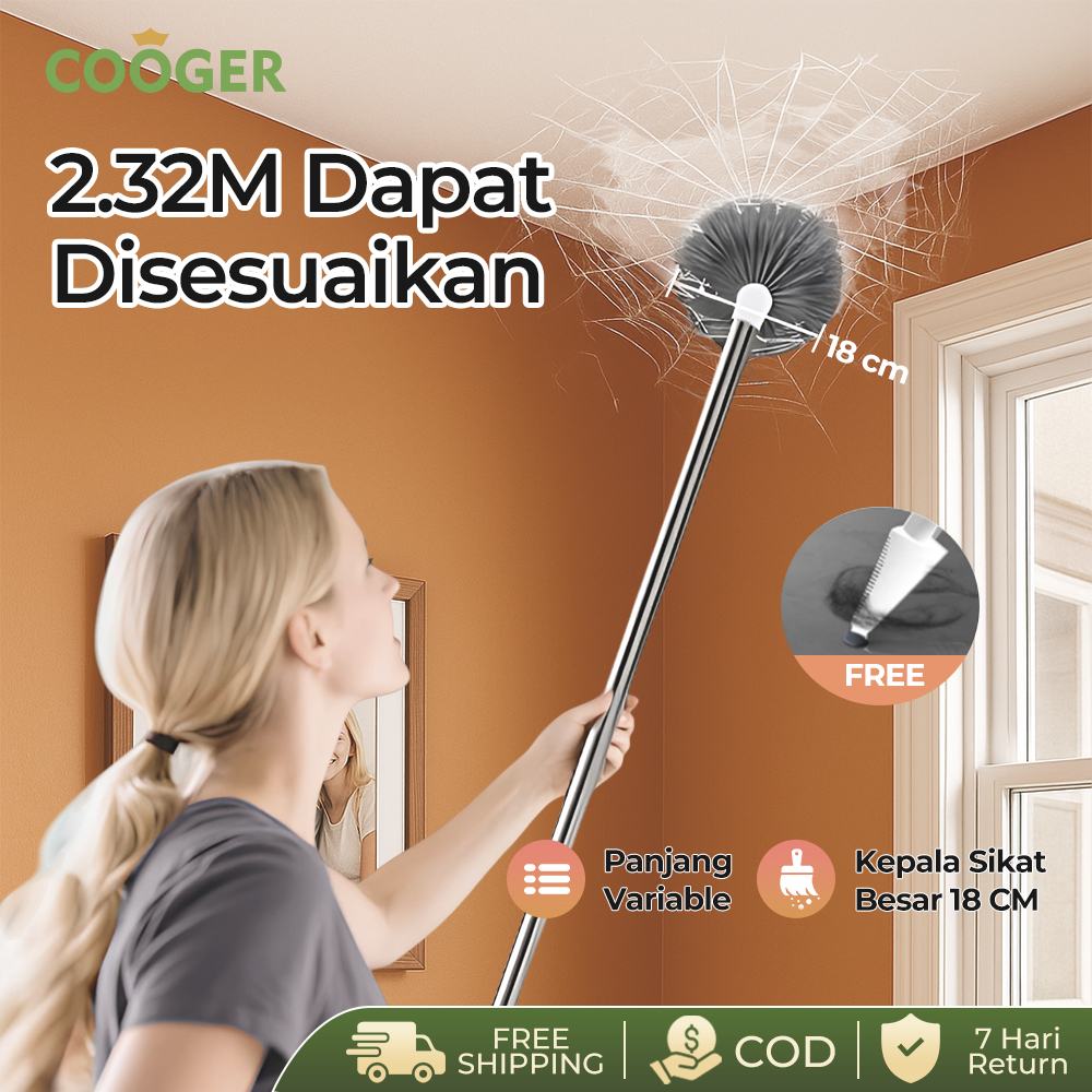 [] COOGER Sapu Plafon 2 Meter Rumah Kemoceng Pembersih Plafond Sawang Sarang Laba Langit Bulu Halus Gagang Panjang