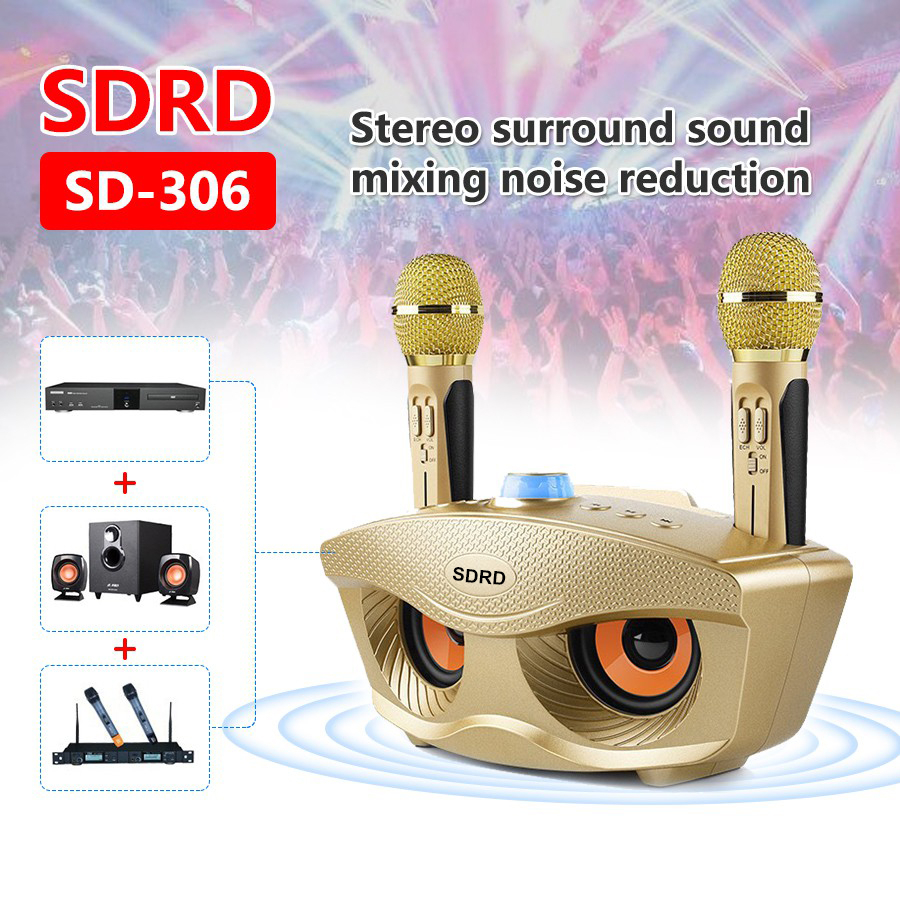SPEAKER BLUETOOTH KARAOKE SDRD SD 306 WIRELESS MIC KARAOKE DUAL MIKROFON NIRKABEL