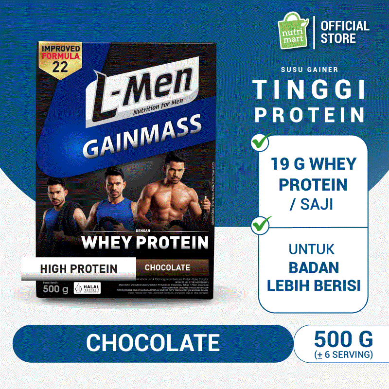 L-MEN GAIN MASS CHOCOLATE 500 G - SUPLEMEN PENAMBAH MASSA OTOT TINGGI WHEY PROTEIN