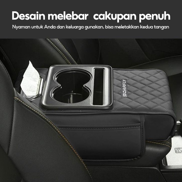 Armrest Pad Mobil Kotak Tisu Mobil Tempat Botol 4 In 1 / Console Box Storage / Cover Tisu Premium