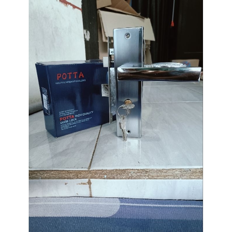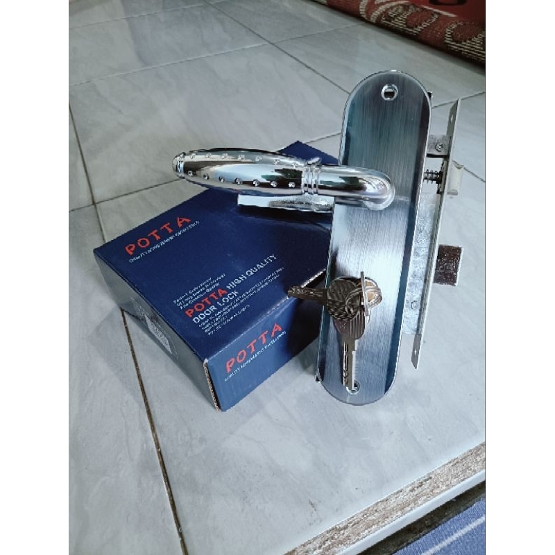 POTTA Gagang Kunci Pintu Handle Kunci Pintu Rumah Tanggung Set 20cm Crom