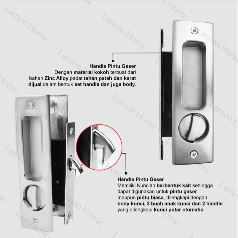 Lemon Home ⭐Garansi 1 Tahun⭐ Kunci Pintu Sliding Geser Set Handle Set Hitam / Perak abby Invisible Sliding Door Lock Latch Handle Pintu Geser Estetik Kuat LH