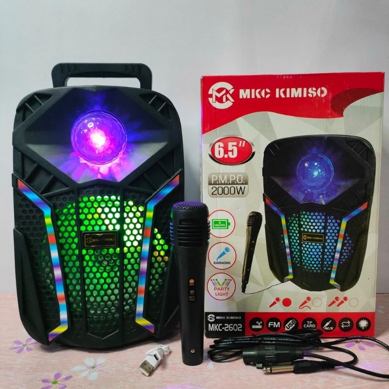 SPEAKER BLUETOOTH 2602 BONUS MIC 6,5INCI SALON AKTIF PORTABLE RADIO FM SPEAKER WIRELESS LED
