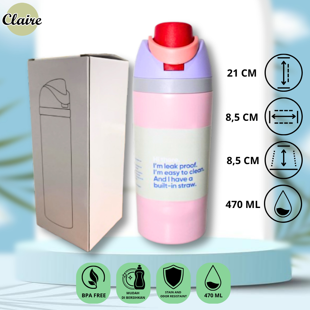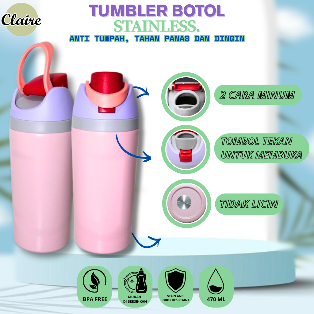 [Claire] Botol Minum Termos Stainless 470 ML Tahan Panas Dan Dingin/Bisa Menyimpan Suhu Dingin & Panas Lebih Lama/Botol Minum Dengan Bahan SUS 304/Tutup Botol Anti Tumpah