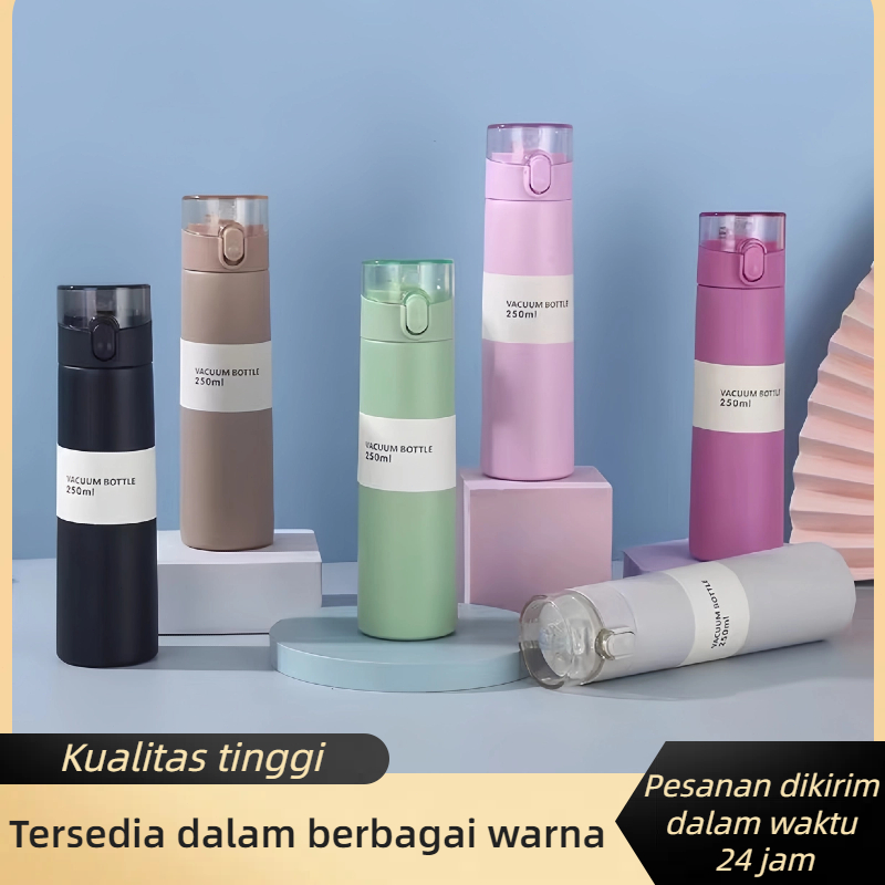 Termos mini 250ml, tahan lama, bukaan satu tombol, termos berkualitas tinggi, cangkir air stainless steel dengan sedotan