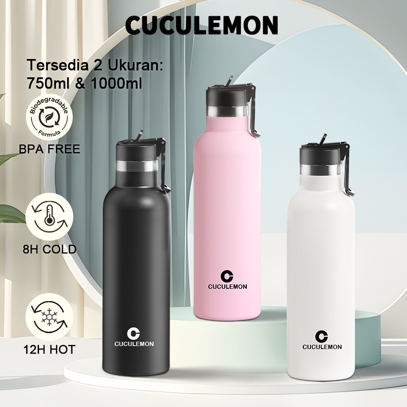 Cuculemon Termos Stainless Steel Straw Bottle Botol Minum Aesthetic 1000ml Tahan Panas Dingin
