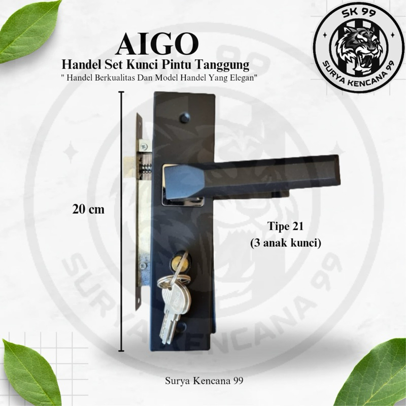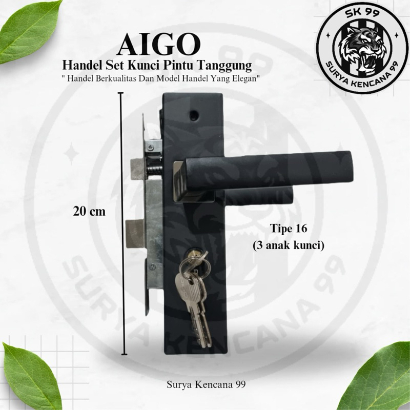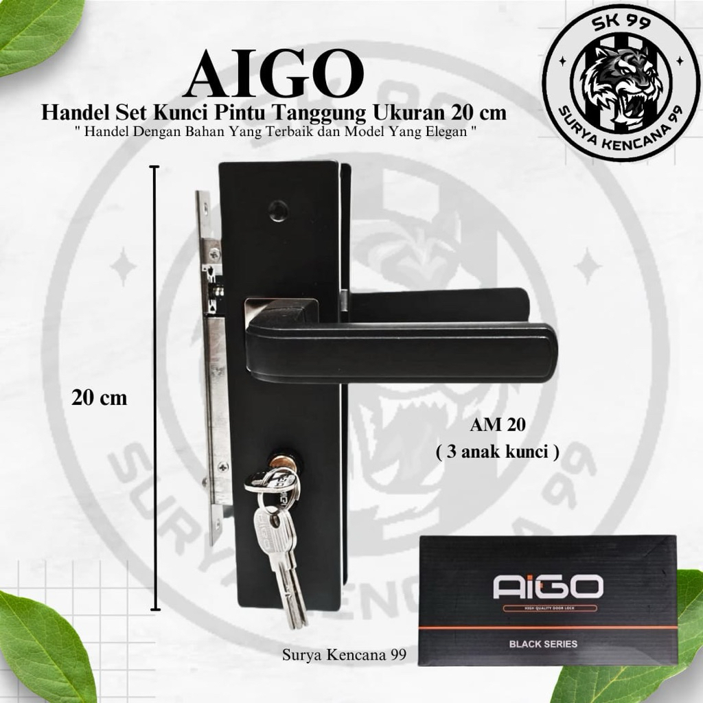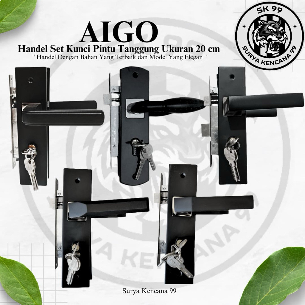 PROMO Handle Kunci Pintu Tanggung Hitam Set AIGO 20 cm Black Series