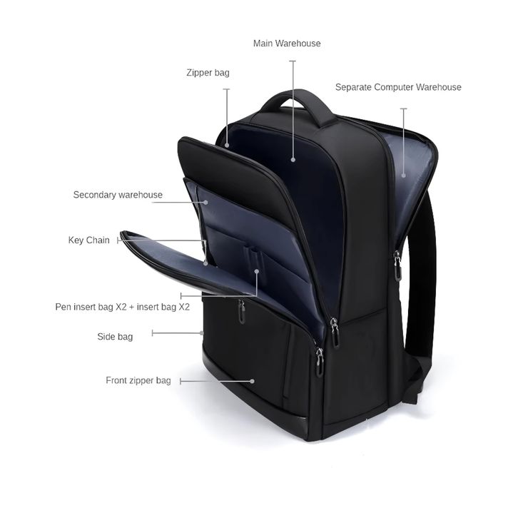 VARD Brave Master Backpack Ransel Kerja Pria Waterproof Polos Simpel Black Tas dan Penyimpanan