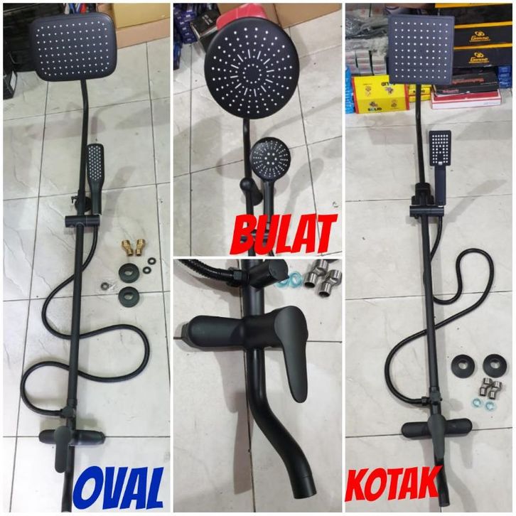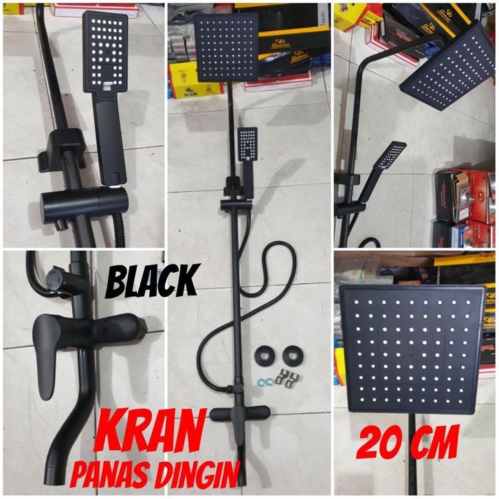 PROMO shower tiang coulomn set kran panas dingin black hitam PROMO TERMURAH eserd