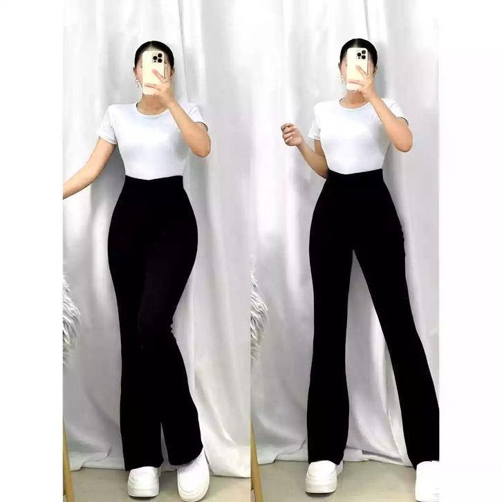 Celana Fit And Flare Pants Cutbray Scuba Pinggang Highwaist Bahan Stretch Melar ElastisKulot Cutbray