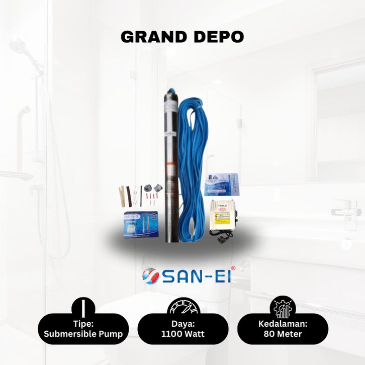 San Ei Pompa Air Satelit 3 inch 1.5 HP + Kabel 80 Meter Noryl / Pompa Submersible San Ei