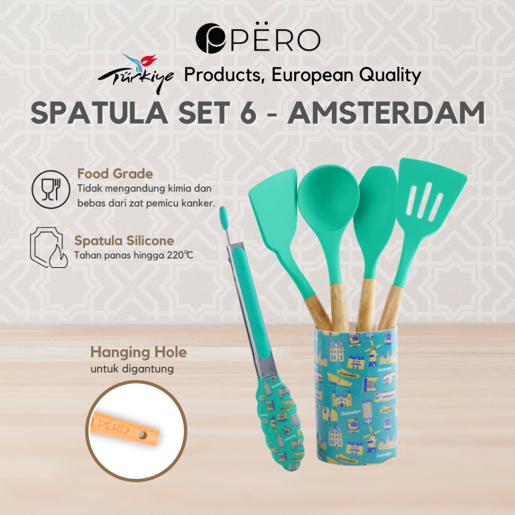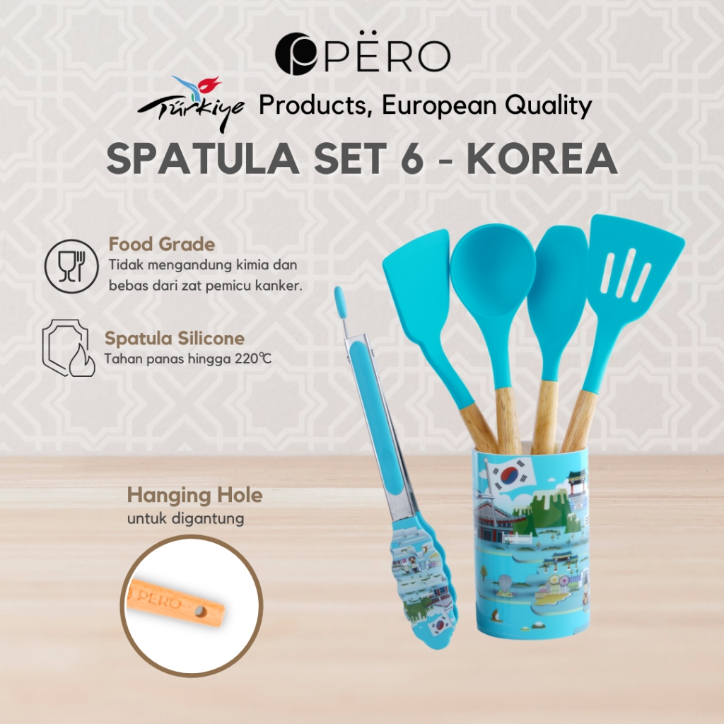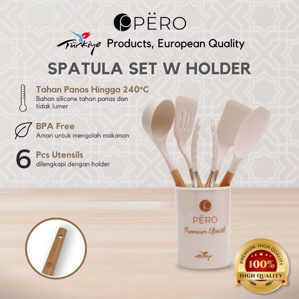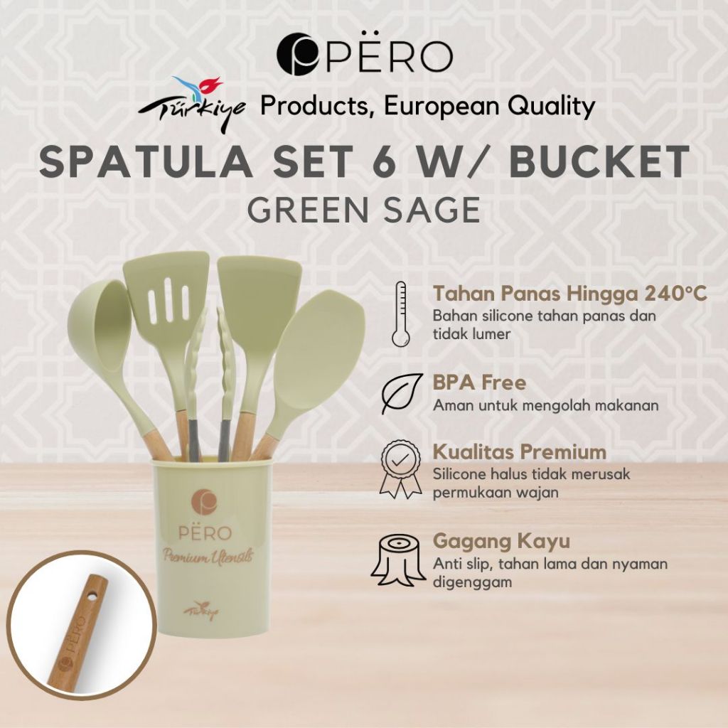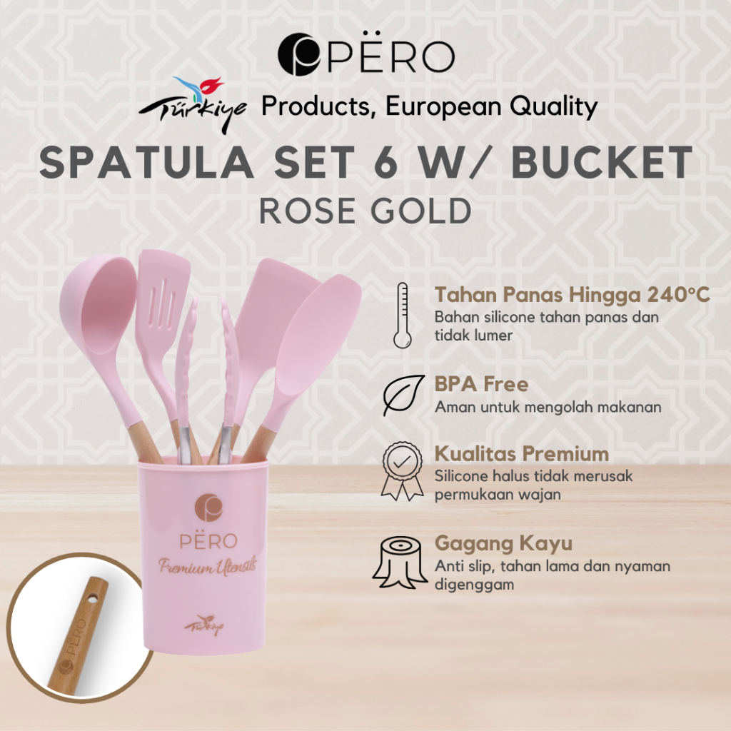 [Promo Best Deal] Pero Spatula Silicone Bucket Tahan Panas Set of 6 / Spatula Silikon Tahan Panas Set dengan Holder