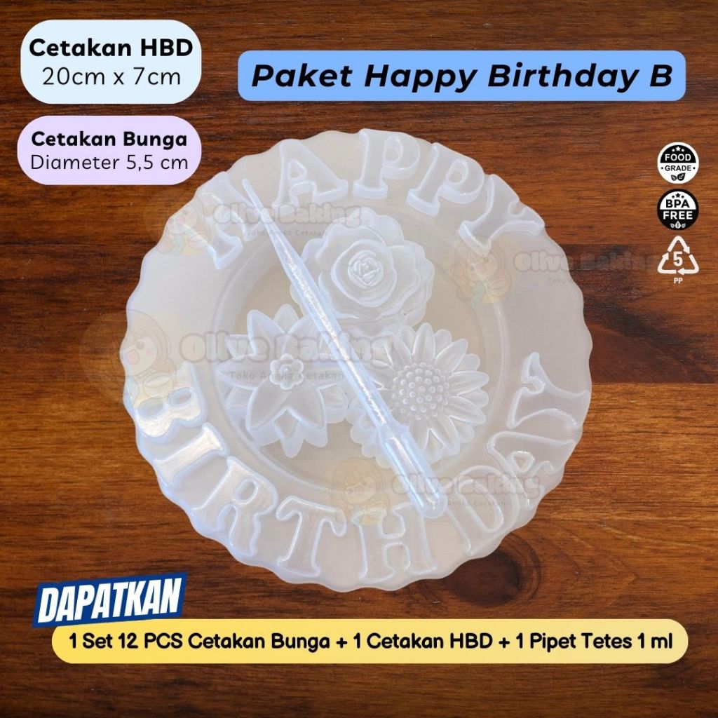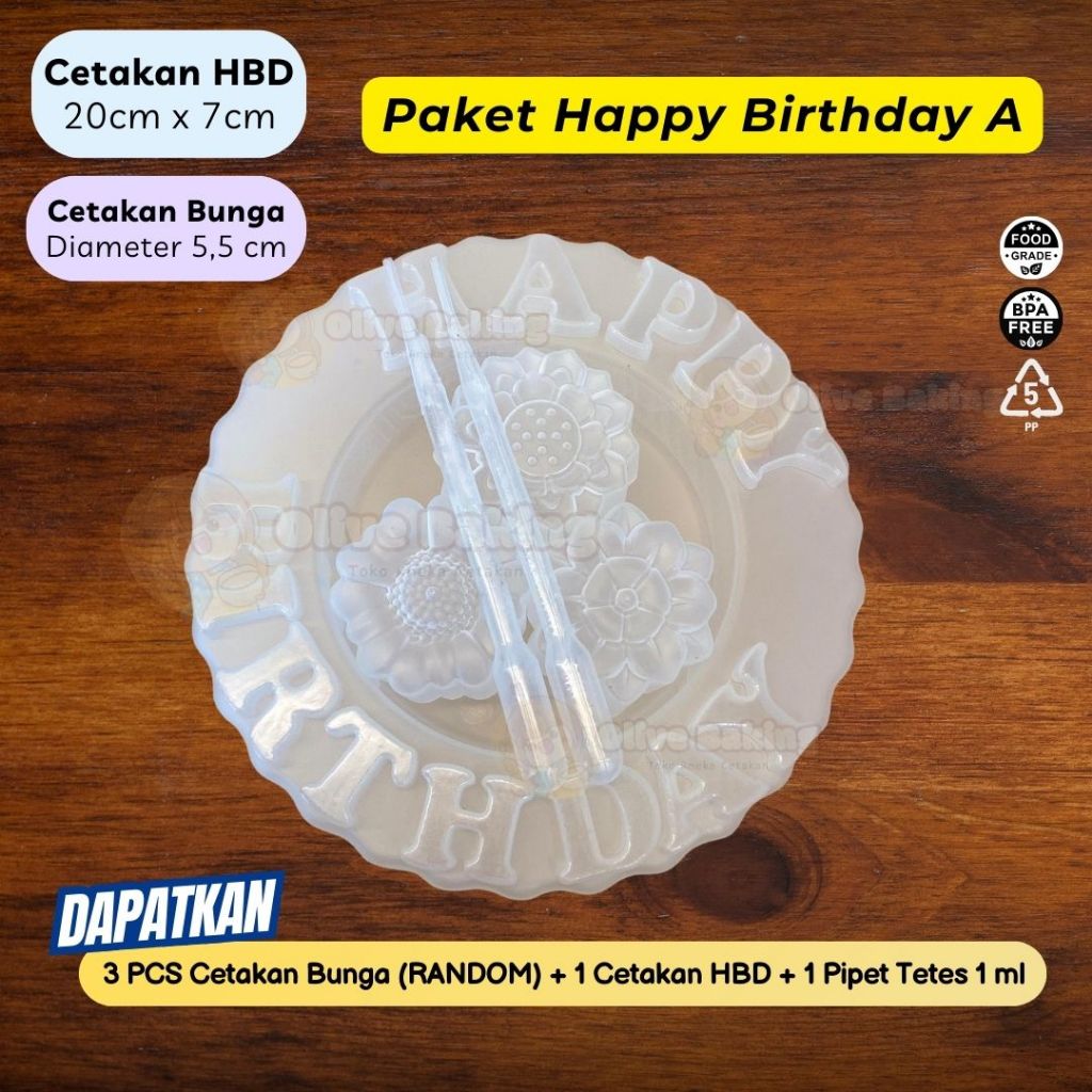 PAKET HAPPY BIRTHDAY (Cetakan Bunga + 1 cetakan HAPPY BIRTHDAY + 1 pcs pipet tetes 1 ml)