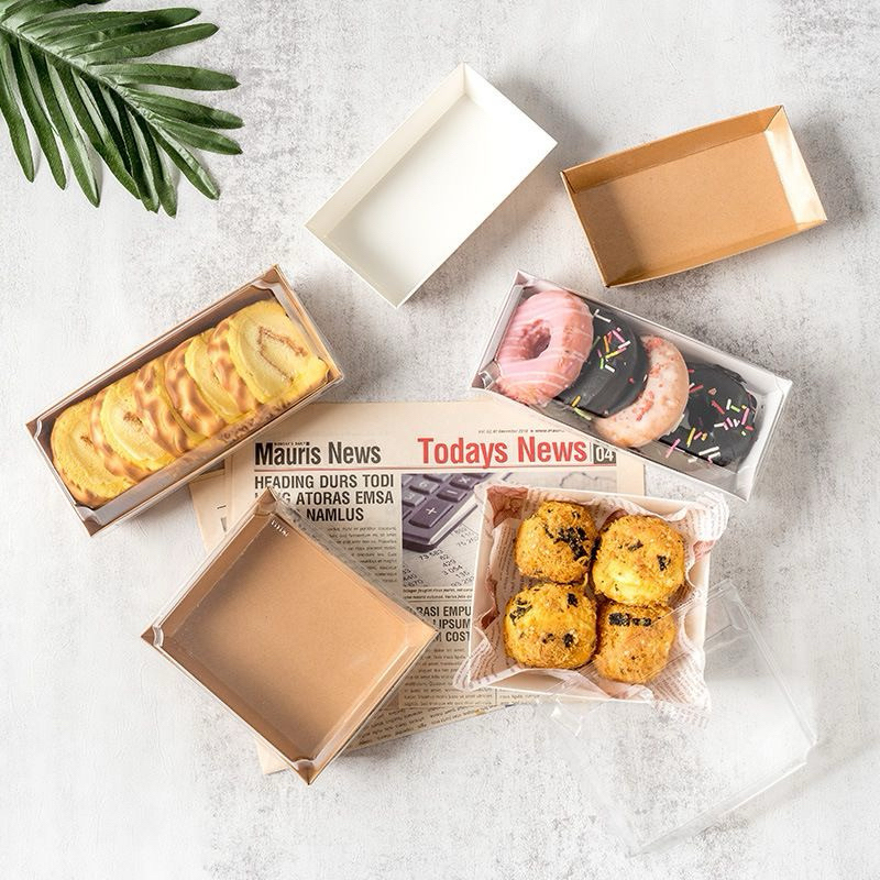 MDLBake 10 PCS PREMIUM BOX Cup Roti Oven Kotak / Tempat Roti Bisa Masuk Oven / Cup Sandwich PANJANG KOTAK COKLAT PUTIH