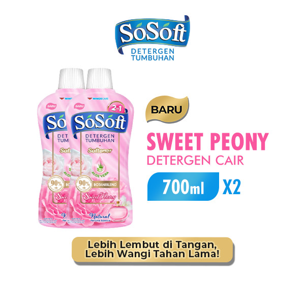 Sosoft Deterjen Cair Sweet Peony Natural Perfume Botol 700 ml x2
