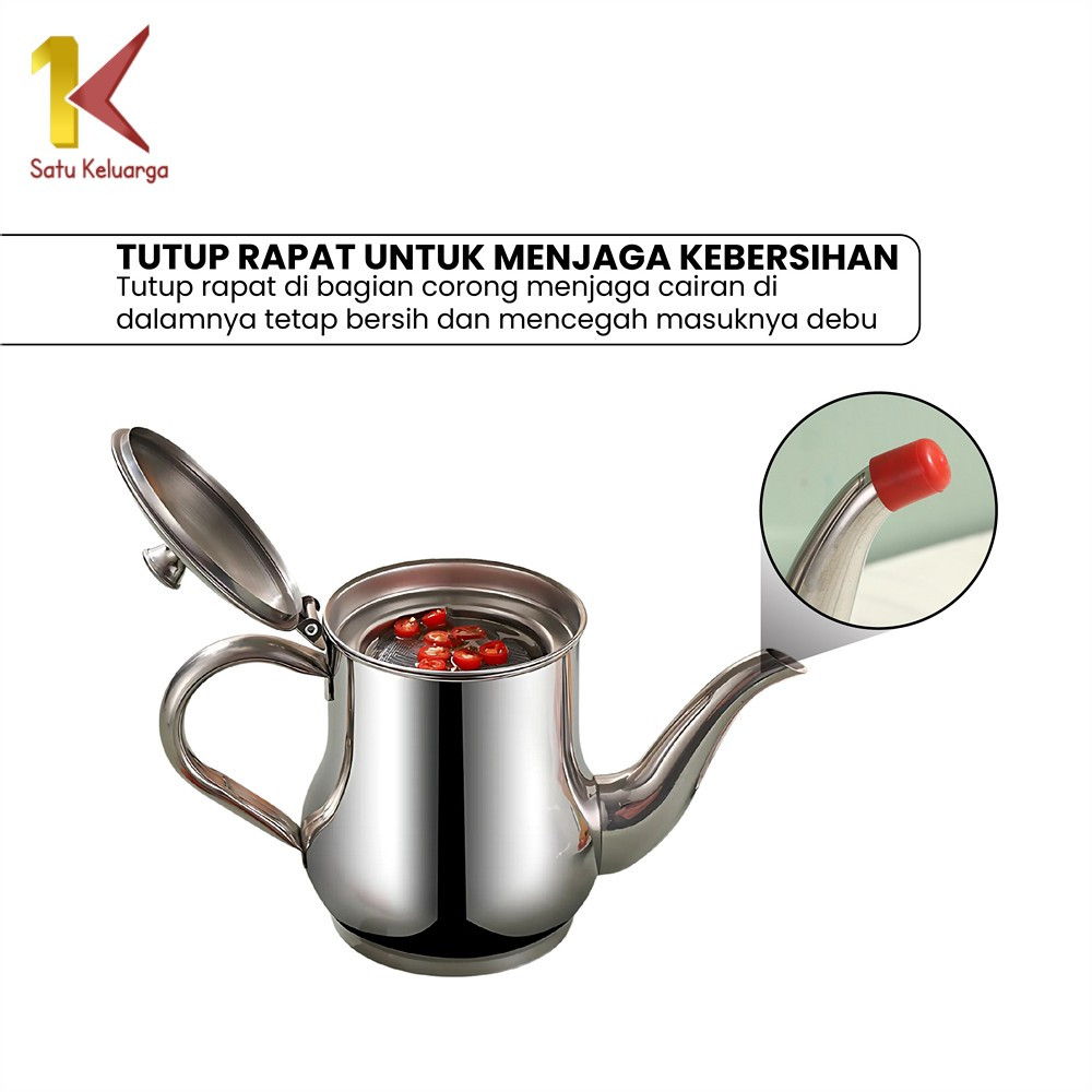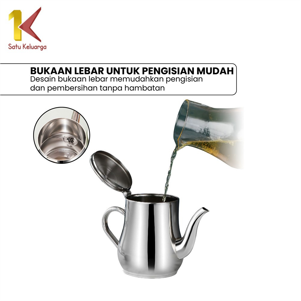Satu Keluarga Oil Pot Teko Minyak 600ML C1183 Wadah Penyaring Minyak Goreng Stainless Anti Karat