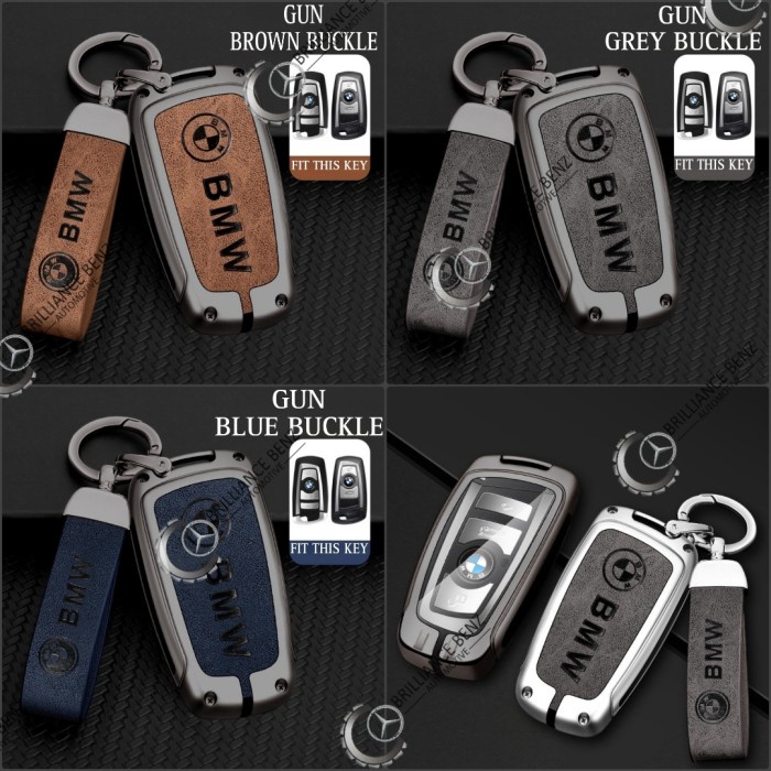 METAL KULIT KEY CASE SARUNG KUNCI BMW F10 F20 F25 F30 X1 X3 320 520 - GUN-BROWNBUCKLE