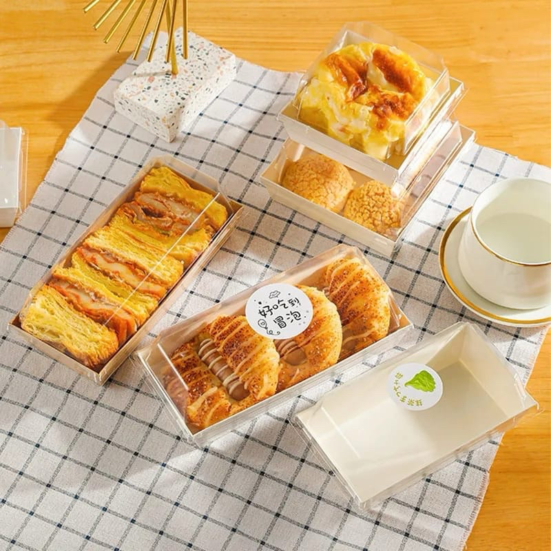 MDLBake 10 PCS PREMIUM BOX Cup Roti Oven Kotak / Tempat Roti Bisa Masuk Oven / Cup Sandwich PANJANG KOTAK COKLAT PUTIH