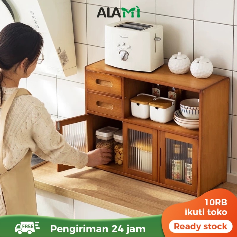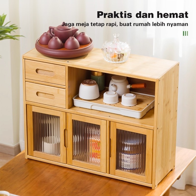 Alami Cangkir Serbaa Lemari / Lemari Dapur Multifungsi / Rak Penyimpanan Dapur / Lemari Bumbu Kayu Alami / Anti Debu / D