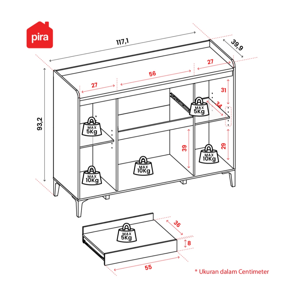 PIRA METROPOLIS OX - HIRO SB121 Bufet / Lemari Dapur / Kabinet Dapur / Meja TV / Sideboard / Rak Serbaa