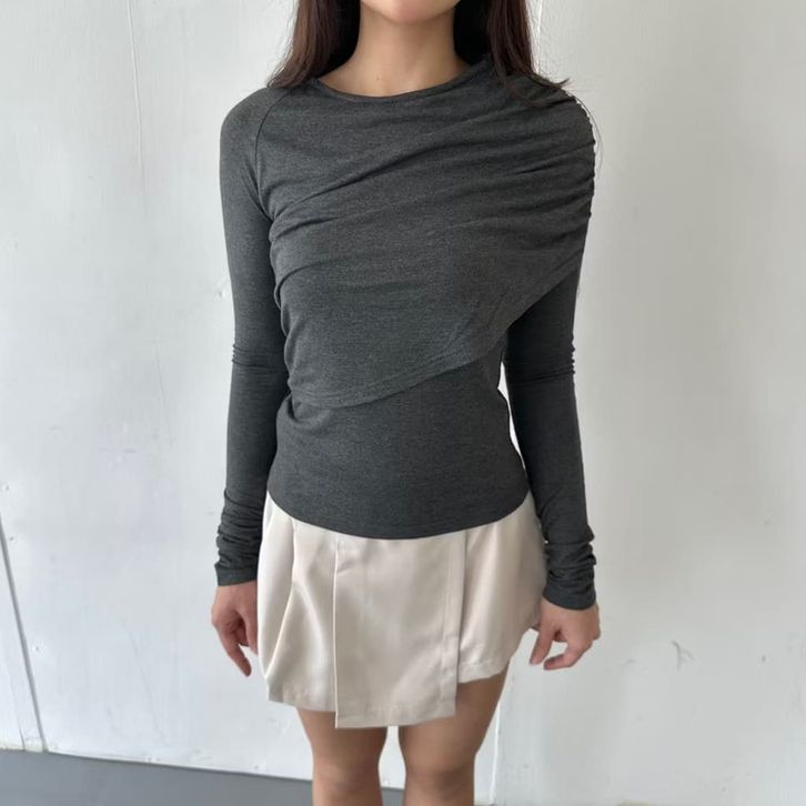 PEGGY TOP - Atasan Wanita Lengan Panjang Kaos Korean Top Basic Baju Summer Knit Rib Long Short Sleeve