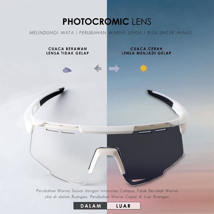 ORIGINAL Colore.in Kacamata Sepeda Pria Olahraga Photocromic Rectangle Cycle Sports - 933 ubogh
