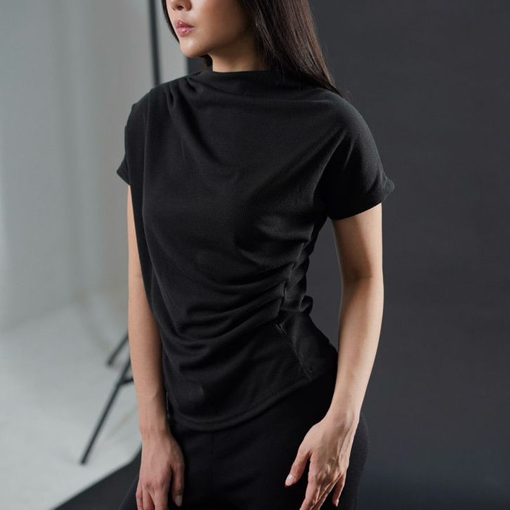 JOY TOP - Atasan Knit Wanita Lengan Pendek Ruched Pleated Rample Basic Korean Top Summer Baju Knit Boat Neck Rib Wanita