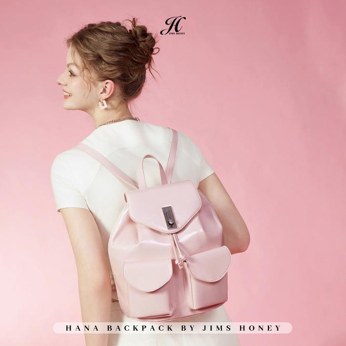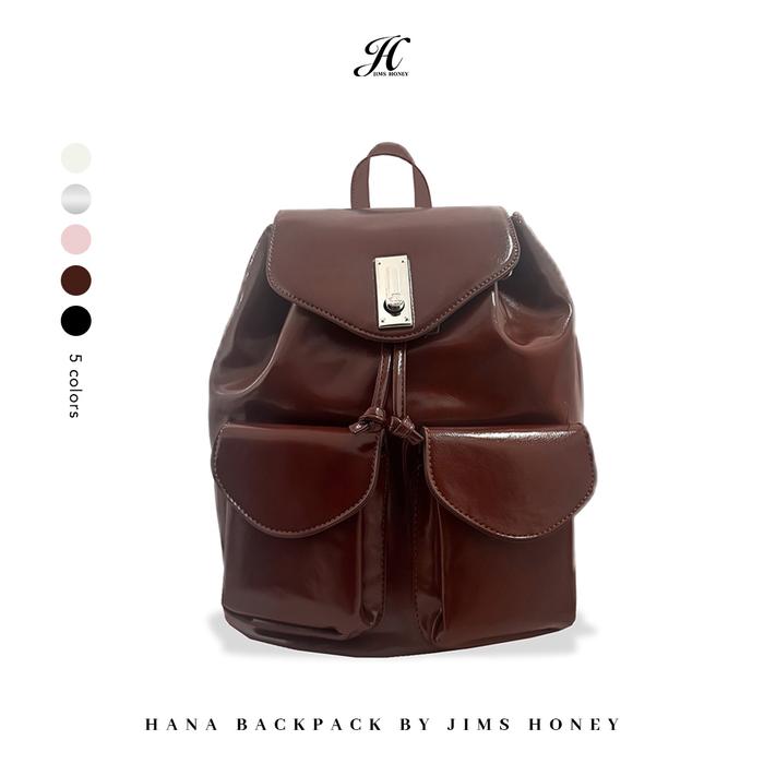 JIMS HONEY - Hana Backpack - Tas Ransel Wanita Kulit Serut Sekolah Cewek kuliah kerja - WHITE