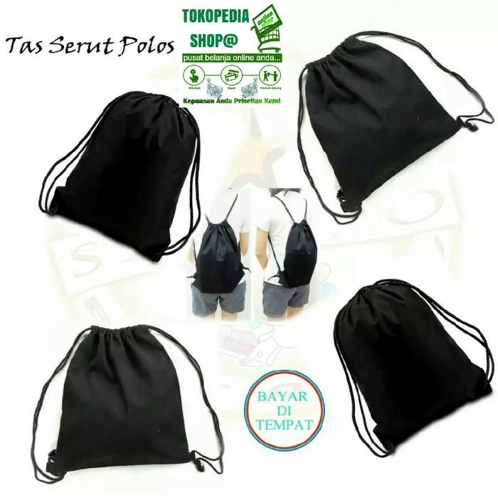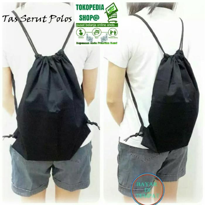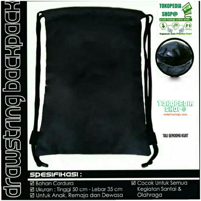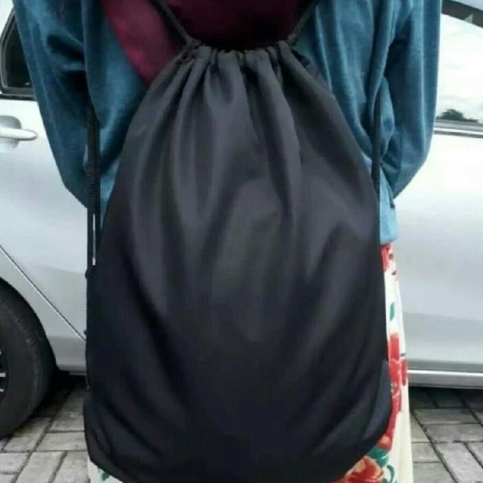 Tas serut polos/Drawstring/ransel/Tas tali/tas gaul/tas kampus sekolah - Hitam