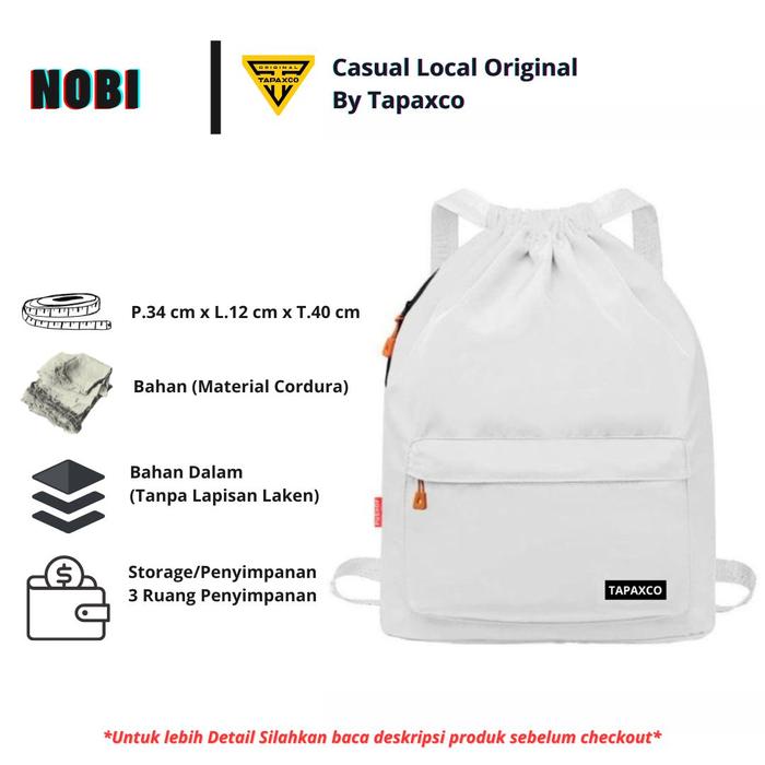 TAPAXCO Tas Ransel Pria Terbaru Backpack Nobi Daypack Serut Casual Local Original Sekolah - Hitam