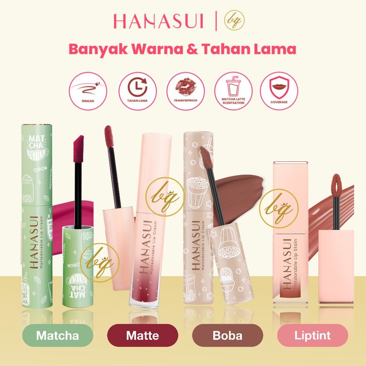 BOBA 01 Forest Berry, BOBA 02 brown sugar, BOBA 03 salted caram, BOBA 04 PINK LAVA, BOBA 05 CREAMYPEACH, BOBA 06 HAZELNUTLATE, HANASUI 01-KISS, HANASUI 02-POSH, HANASUI 03-STAR, HANASUI 04-CHIC, HANASUI 05-CLASSY, HANASUI 06-RITZ, HANASUI 07-SPARK, HANASUI 08-FANCY, HANASUI 09 FAME, HANASUI 10 ALLURE, HANASUI 11 BRICK, HANASUI 12 AMAZE, HANASUI 13 ADORA, HANASUI 14 DUSTY, HANASUI 15 FLAME, HANASUI 16 GLAM, LIPTINT BLOODY 06, LIPTINT CHERRY 01, LIPTINT COPPER 07, LIPTINT CORAL 05, LIPTINT DREAMY 09, LIPTINT PEACHY 02, LIPTINT ROSY 08, LIPTINT RUBY 03, LIPTINT SWEET 04, MATCHA 01MATCHALICIO, MATCHA 02MATCHAMALOW, MATCHA 03MATCHACIANO, MATCHA 04MATCHALOVER, MATCHA 05MATCHABLEND, MATCHA 06MATCHACHOCO