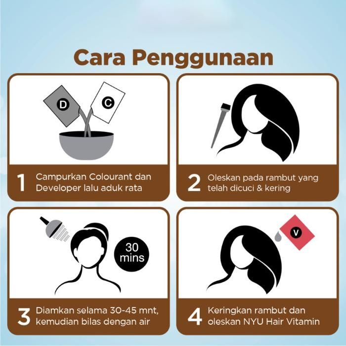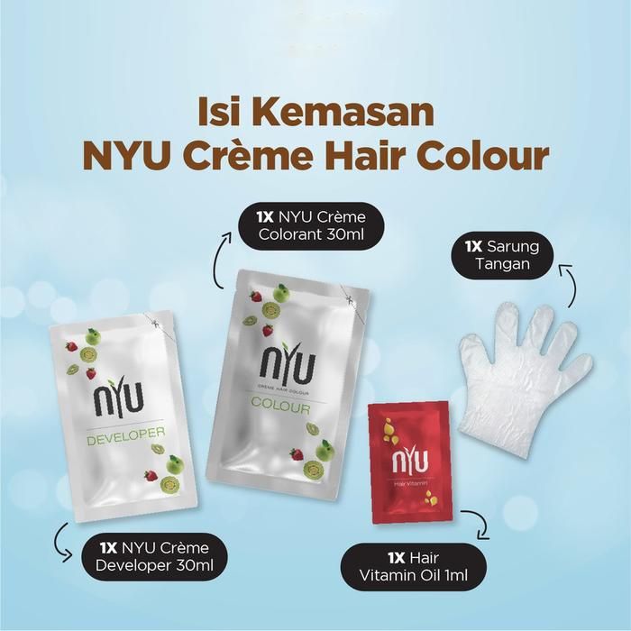NYU Creme Hair Colour Pewarna Rambut Cat Rambut Burgundy Bleaching Caramel Natural Balck - Blue Black