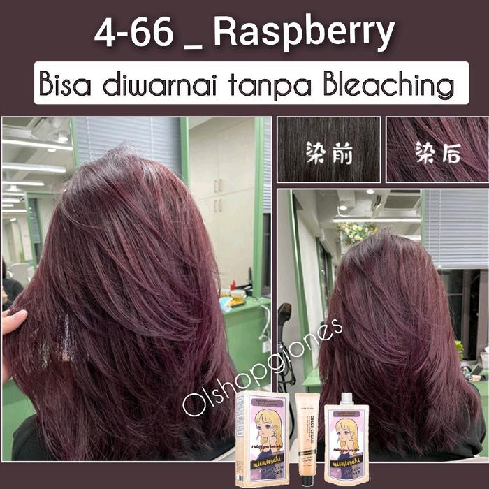 Fenkang Miomiosaki 4.66 Raspberry hair color japan tanpa bleaching cat pewarna rambut Warna Tahan Lama