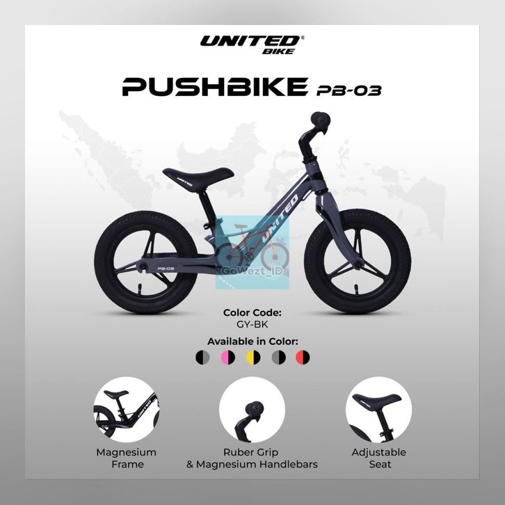 Sepeda Push Bike Anak Ukuran 12 UNITED Balance Bike PB 03 Frame Magnesium Ban Pompa | High Quality