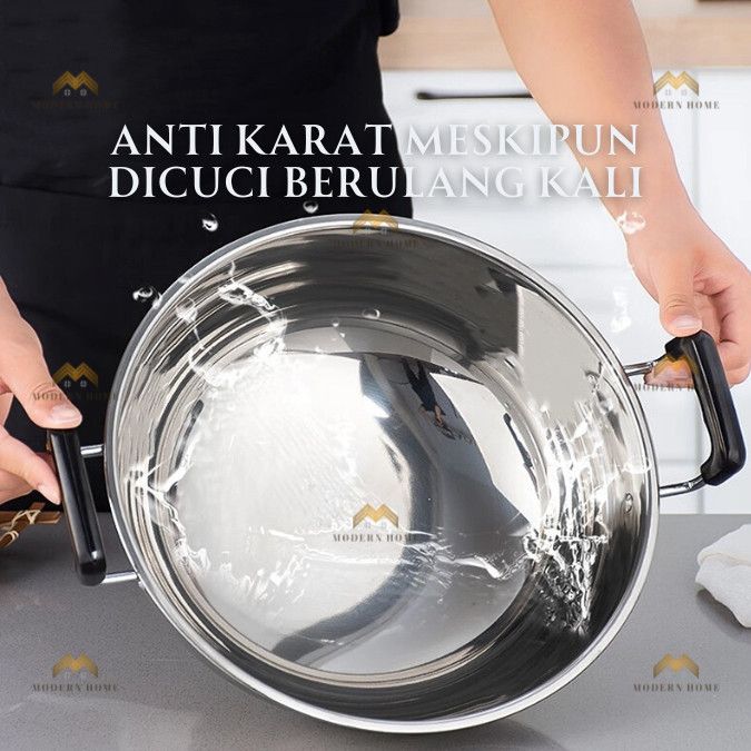 PROMO Wajan Penggorengan Jumbo Tebal Full Stainless Steel Berbagai Ukuran Kuali Premium dengan Pegangan Stainless Steel