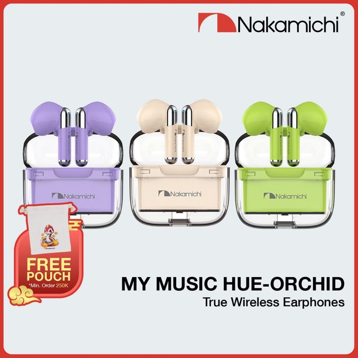Nakamichi MY MUSIC HUE ORCHID TWS Earphone Full Bass Bluetooth 5.3 Mic HD Playtime Up To 12 Jam