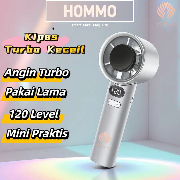 Hommo Kipas Angin Mini Turobr USB|Kipas Angin Genggam Turbo 120 Level Variabel|HD LED Display|Kipas Viral|Kipas Angin P
