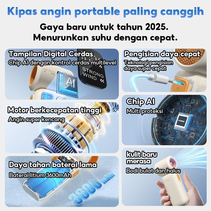 HYUNDAI Kipas Angin Portable Mini Fan High-speed Lucu Turbo Digital Display kipas portable
