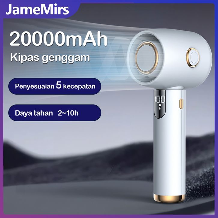 JameMirs 20000mAh kipas angin portable mini tahan lama 5-Speed Wind LED Display USB Handheld Fan Digital Display Adjust
