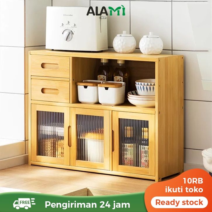 Cangkir Serbaguna Lemari Lemari Dapur Multifungsi Rak Penyimpanan Dapur Lemari Bumbu Kayu Anti Debu Desain M