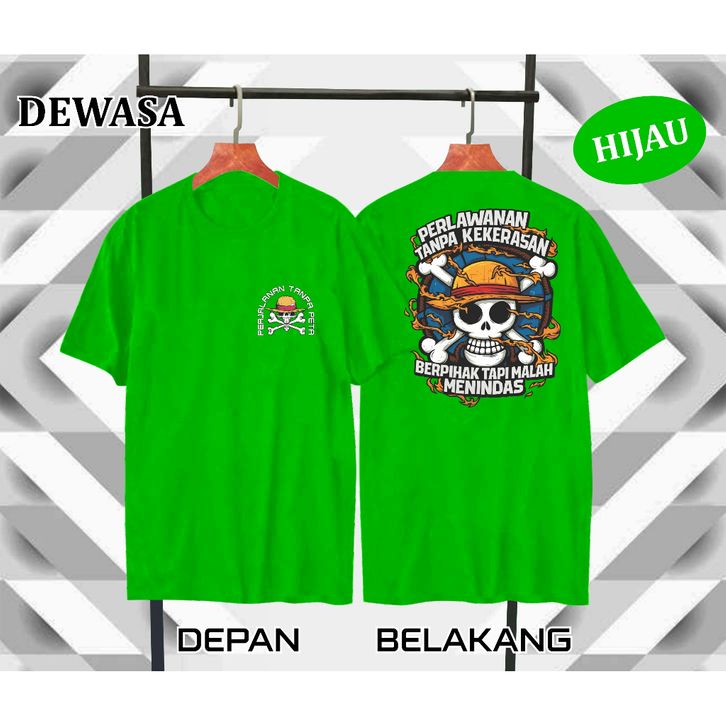 ONE PIECE TANPA KEKERASAN Pakain Pria Atasan T-shirt Kaos Murah Lengan Pendek Gambar dan Kata Lucu Unisex