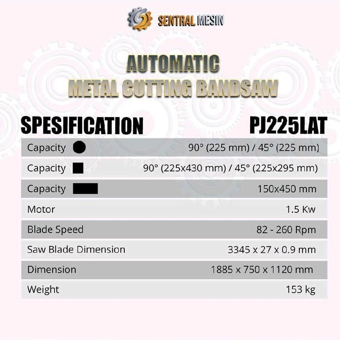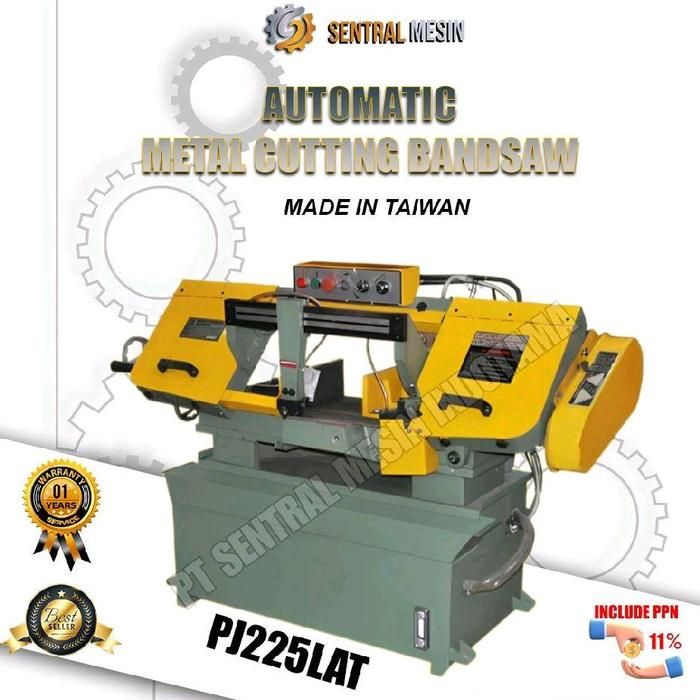 Alat / Mesin Pemotong Gergaji Besi Metal Bandsaw Machine 225mm type PJ225L Automatic Metal Cutting Bandsaw 150x450 mm