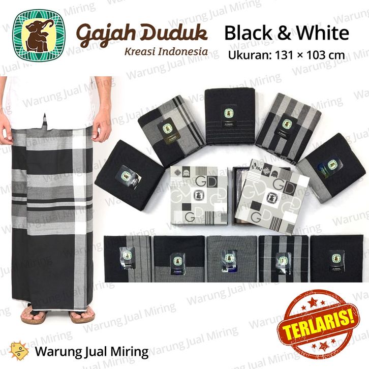 RK - Sarung GAJAH DUDUK Black & White BW Hitam Putih Cap Original Asli Dewasa Pria elegant