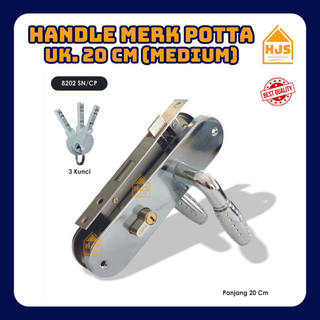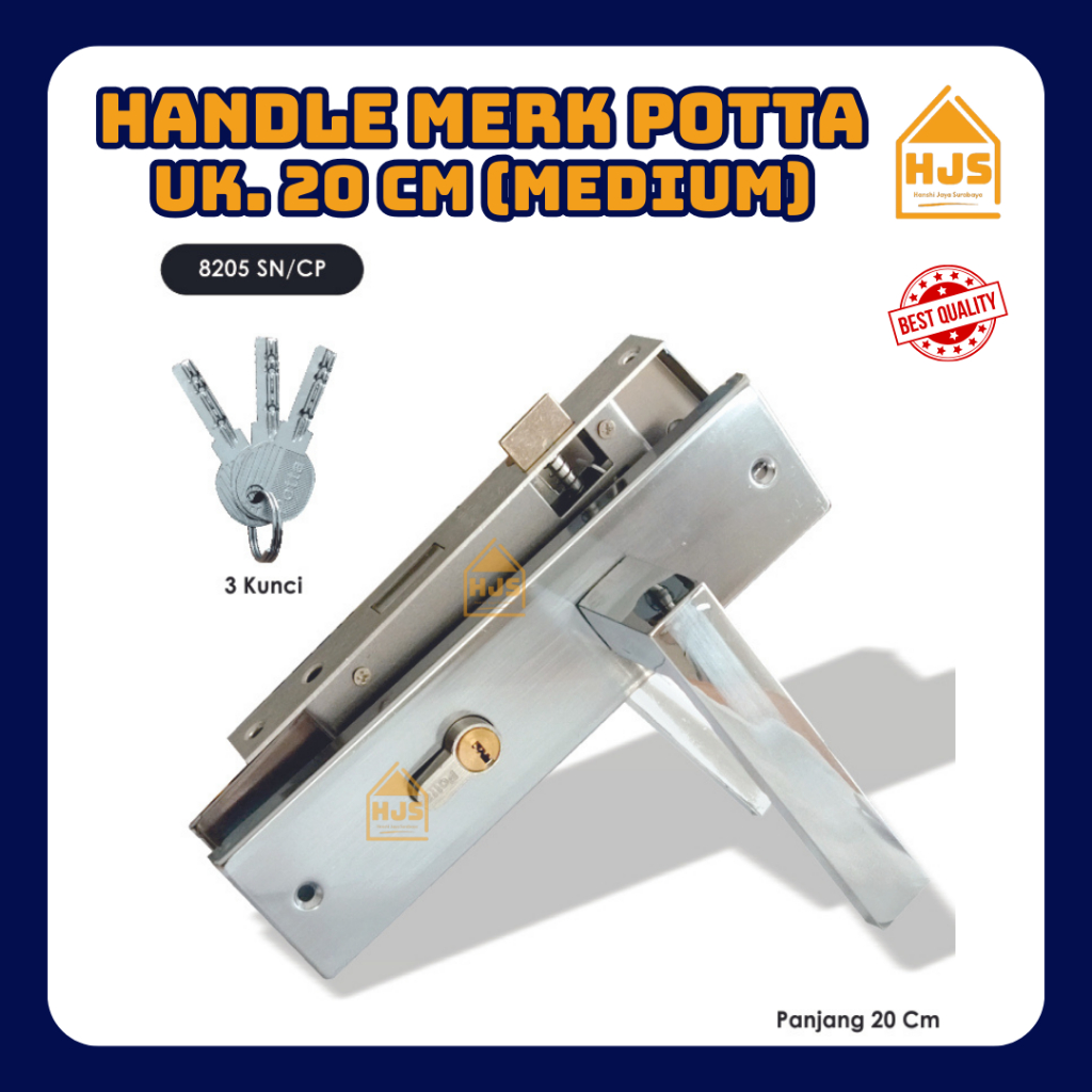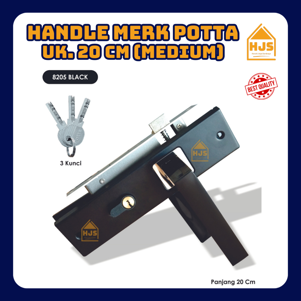 [HJS] Gagang Kunci Pintu / Handle Pintu Komplit Ukuran Tanggung 20 cm Bulat Kotak POTTA HITAM PUTIH SILVER MINIMALIS