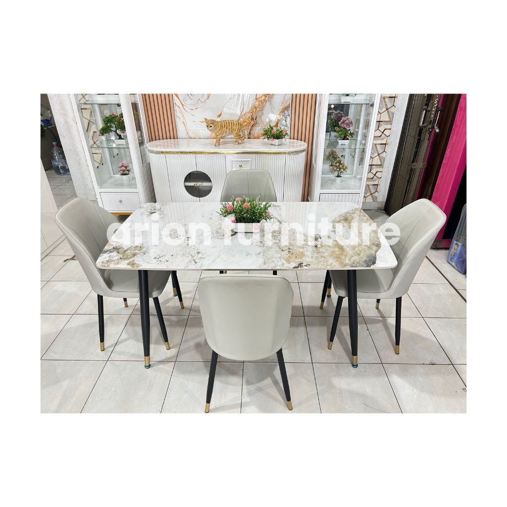 [Mall] MEJA MAKAN MARMER SET 4 KURSI MEJA MAKAN BATU SINTERED MEJA MAKAN MINIMALIS MURAH BISA CICILAN TANPA DP
