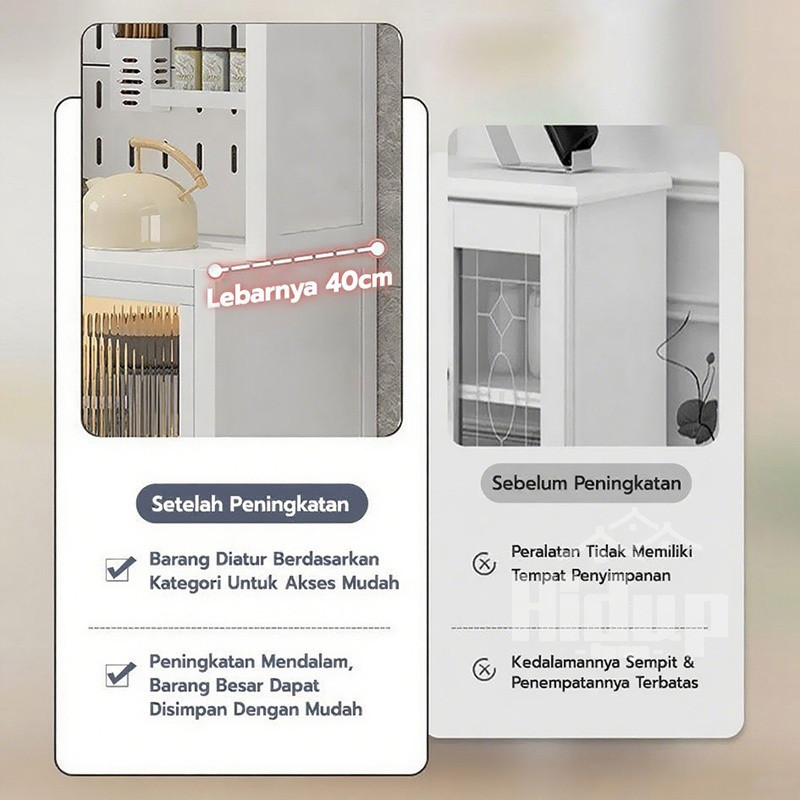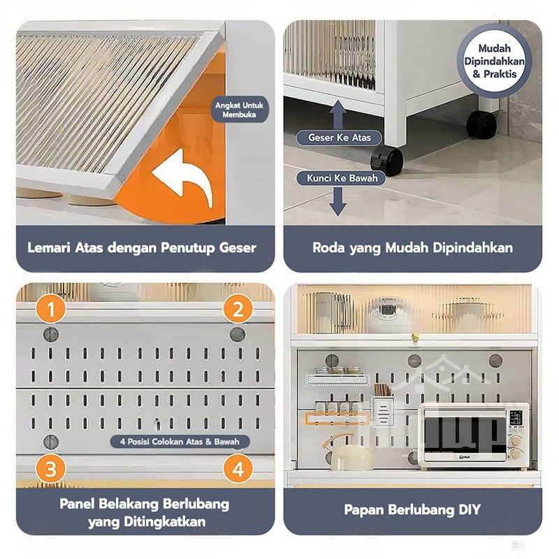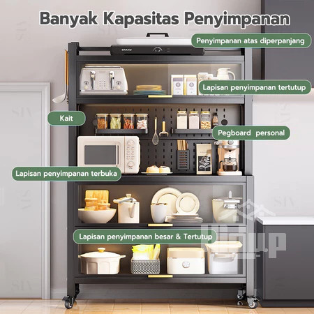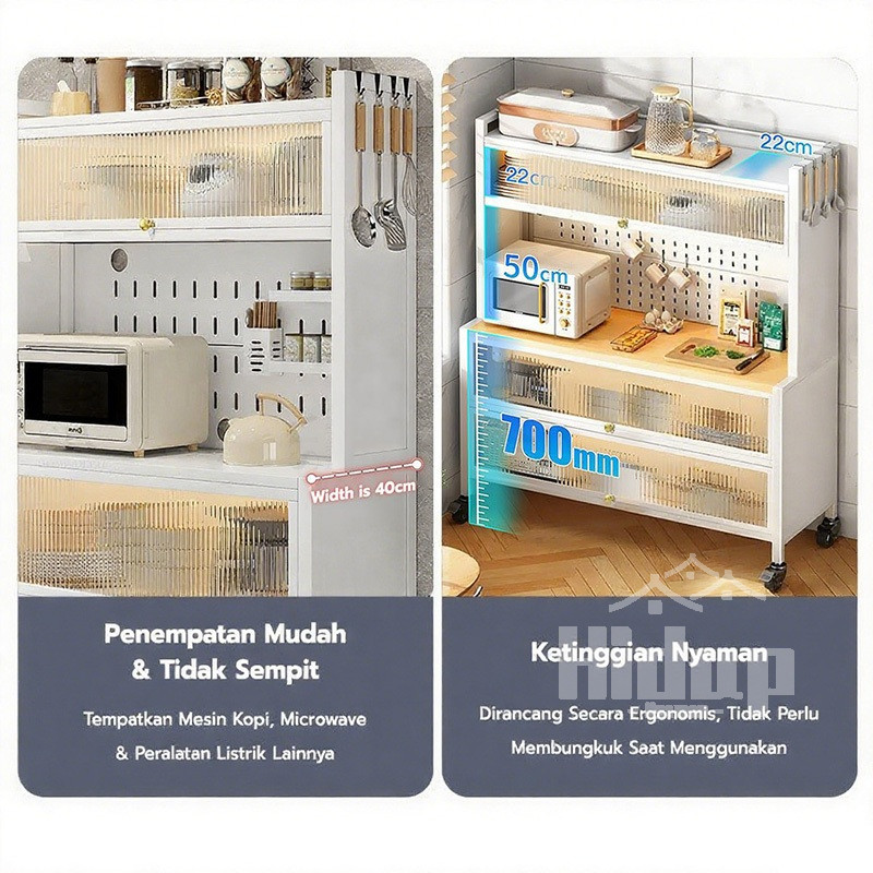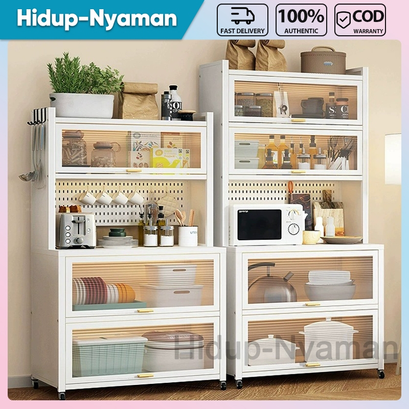 Rak Dapur Lemari Dapur Dengan Pintu Rak Penyimpanan Microwave Oven Rak Multi-Lapisan Lemari Piring Lantai Berdiri Rak