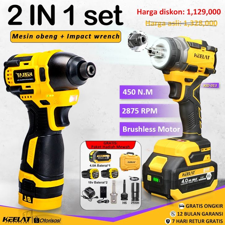 MESIN BOR BATERAI 2 IN 1 KOMBO DRILL IMPACT DRIVER BRUSHLESS CORDLESS MESIN BOR LISTRIK ORIGINAL GRATIS ONGKIR