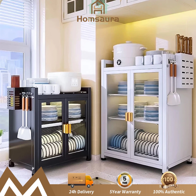 Homsaura Rak Piring Tertutup Lemari Piring Minimalis Rak Lemari Dapur Dengan Pintu Anti Serangga